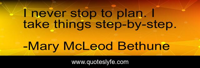 This page presents the quote "I never stop to plan. I take things step-by-step.". Author of this quote is Mary McLeod Bethune. .