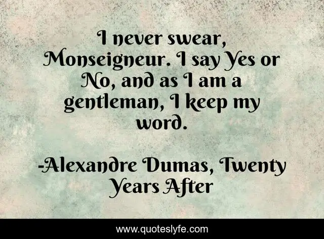 This page presents the quote "I never swear, Monseigneur. I say Yes or No, and as I am a gentleman, I keep my word.". Author of this quote is Alexandre Dumas, Twenty Years After. This quote is about faith, gentleman, word, honor, morals,.