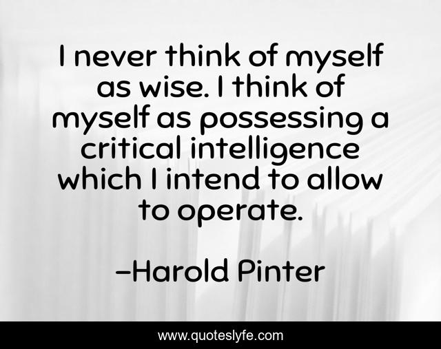 This page presents the quote "I never think of myself as wise. I think of myself as possessing a critical intelligence which I intend to allow to operate.". Author of this quote is Harold Pinter. This quote is about myself, wise, think,.