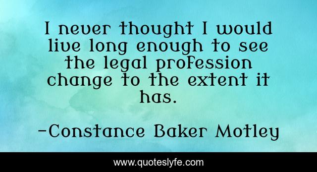 This page presents the quote "I never thought I would live long enough to see the legal profession change to the extent it has.". Author of this quote is Constance Baker Motley. This quote is about thought, change, long,.