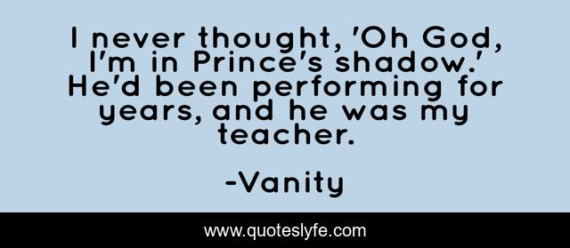 This page presents the quote "I never thought, 'Oh God, I'm in Prince's shadow.' He'd been performing for years, and he was my teacher.". Author of this quote is Vanity. This quote is about thought, god, shadow,.
