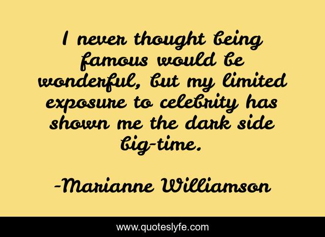 This page presents the quote "I never thought being famous would be wonderful, but my limited exposure to celebrity has shown me the dark side big-time.". Author of this quote is Marianne Williamson. This quote is about thought, me, dark,.