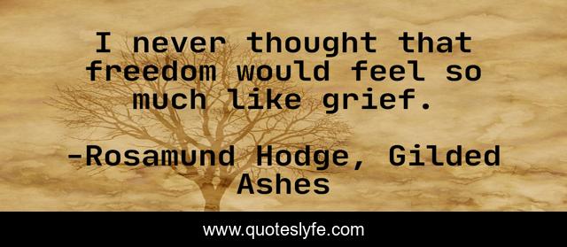 This page presents the quote "I never thought that freedom would feel so much like grief.". Author of this quote is Rosamund Hodge, Gilded Ashes. This quote is about grief, freedom, loss,.