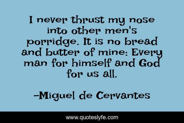 This page presents the quote "I never thrust my nose into other men's porridge. It is no bread and butter of mine: Every man for himself and God for us all.". Author of this quote is Miguel de Cervantes. .