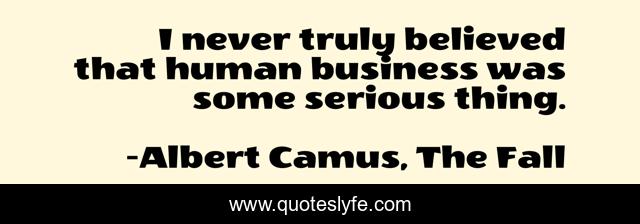 This page presents the quote "I never truly believed that human business was some serious thing.". Author of this quote is Albert Camus, The Fall. This quote is about business, human,.
