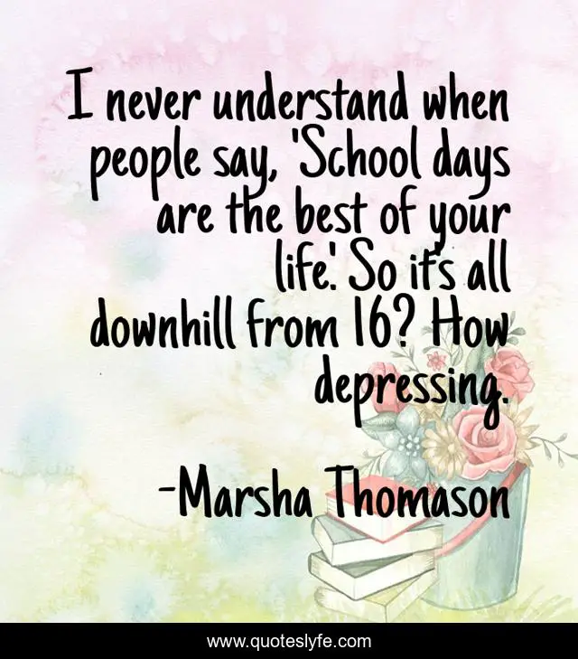 This page presents the quote "I never understand when people say, 'School days are the best of your life.' So it's all downhill from 16? How depressing.". Author of this quote is Marsha Thomason. This quote is about life, school, people,.
