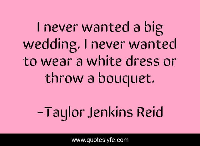 This page presents the quote "I never wanted a big wedding. I never wanted to wear a white dress or throw a bouquet.". Author of this quote is Taylor Jenkins Reid. This quote is about white, dress,.