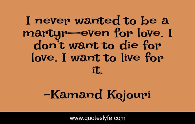 "Kamand Kojouri Quotes." Quoteslyfe.com, 2025. Tue. 09 Dec. 2025. <https://www.quoteslyfe.com/quote/I-never-wanted-to-be-a-martyr-49676>.