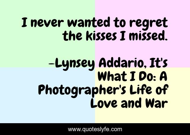 "Lynsey Addario, It's What I Do: A Photographer's Life of Love and War Quotes." Quoteslyfe.com, 2025. Mon. 08 Dec. 2025. <https://www.quoteslyfe.com/quote/I-never-wanted-to-regret-the-kisses-202351>.