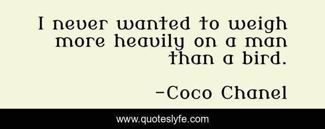 This page presents the quote "I never wanted to weigh more heavily on a man than a bird.". Author of this quote is Coco Chanel. This quote is about bird, man,.