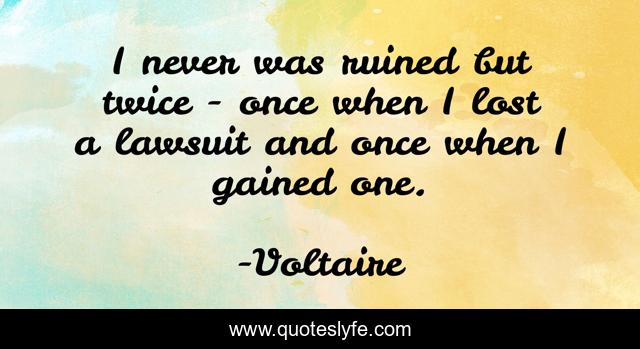This page presents the quote "I never was ruined but twice - once when I lost a lawsuit and once when I gained one.". Author of this quote is Voltaire. .