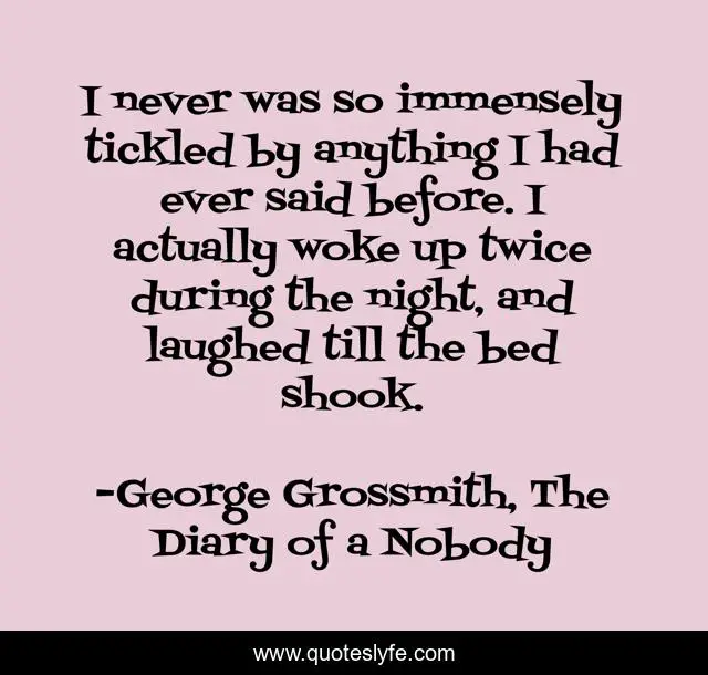 "George Grossmith, The Diary of a Nobody Quotes." Quoteslyfe.com, 2025. Sun. 07 Dec. 2025. <https://www.quoteslyfe.com/quote/I-never-was-so-immensely-tickled-by-199071>.