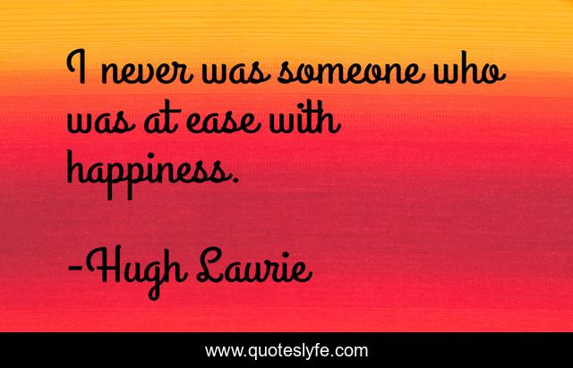 This page presents the quote "I never was someone who was at ease with happiness.". Author of this quote is Hugh Laurie. This quote is about ease, someone,.