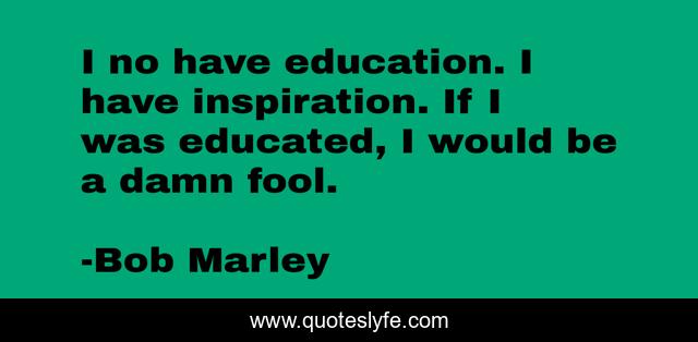 This page presents the quote "I no have education. I have inspiration. If I was educated, I would be a damn fool.". Author of this quote is Bob Marley. This quote is about fool, educated, inspiration,.