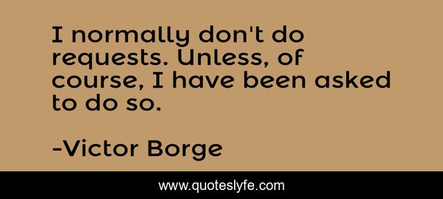 This page presents the quote "I normally don't do requests. Unless, of course, I have been asked to do so.". Author of this quote is Victor Borge. This quote is about funny, humor, humorous, borge, victor-borge, requests, comedy, victor,.