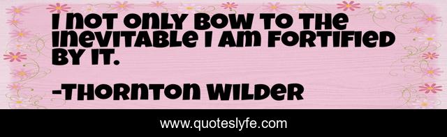 This page presents the quote "I not only bow to the inevitable I am fortified by it.". Author of this quote is Thornton Wilder. .