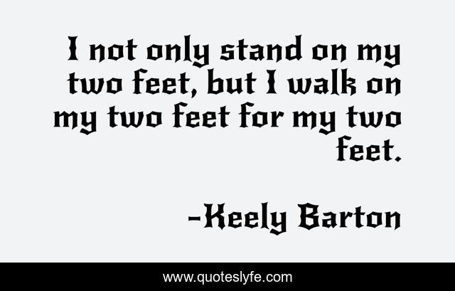 This page presents the quote "I not only stand on my two feet, but I walk on my two feet for my two feet.". Author of this quote is Keely Barton. This quote is about individuality, diversity, life,.