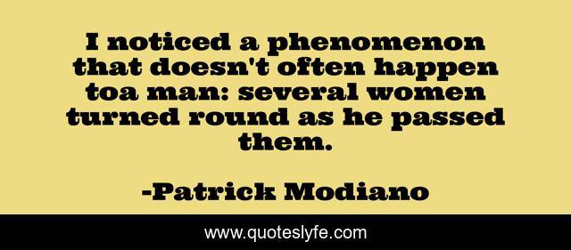 This page presents the quote "I noticed a phenomenon that doesn't often happen toa man: several women turned round as he passed them.". Author of this quote is Patrick Modiano. This quote is about attraction, men, women,.