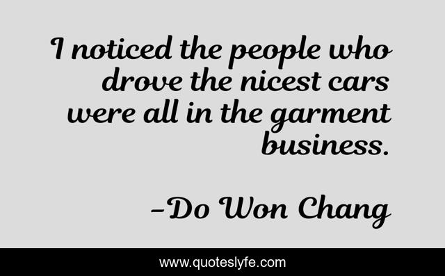 This page presents the quote "I noticed the people who drove the nicest cars were all in the garment business.". Author of this quote is Do Won Chang. This quote is about people, business, noticed,.