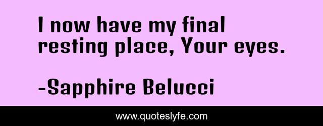 This page presents the quote "I now have my final resting place, Your eyes.". Author of this quote is Sapphire Belucci. This quote is about eternity, love, passion, beauty, affection,.
