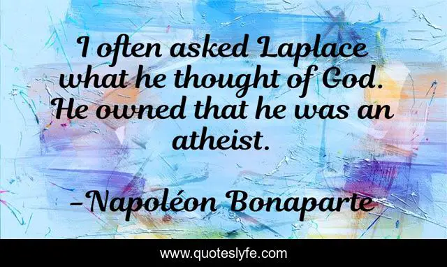 This page presents the quote "I often asked Laplace what he thought of God. He owned that he was an atheist.". Author of this quote is Napoléon Bonaparte. This quote is about views, atheist, french, beliefs, atheism, astronomer, scientist, pierre-simon-laplace, laplace,.