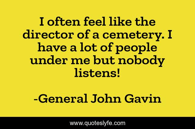 This page presents the quote "I often feel like the director of a cemetery. I have a lot of people under me but nobody listens!". Author of this quote is General John Gavin. .