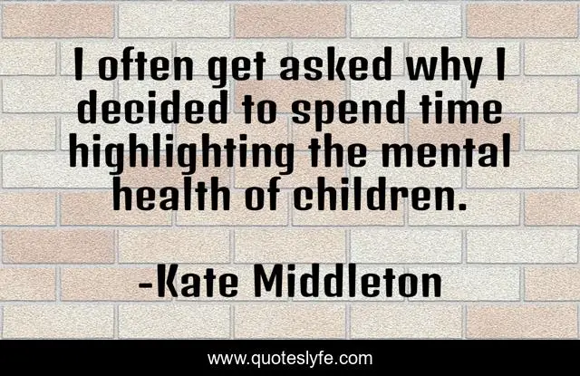 This page presents the quote "I often get asked why I decided to spend time highlighting the mental health of children.". Author of this quote is Kate Middleton. This quote is about children, time,.