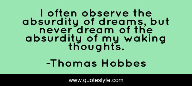 This page presents the quote "I often observe the absurdity of dreams, but never dream of the absurdity of my waking thoughts.". Author of this quote is Thomas Hobbes. .