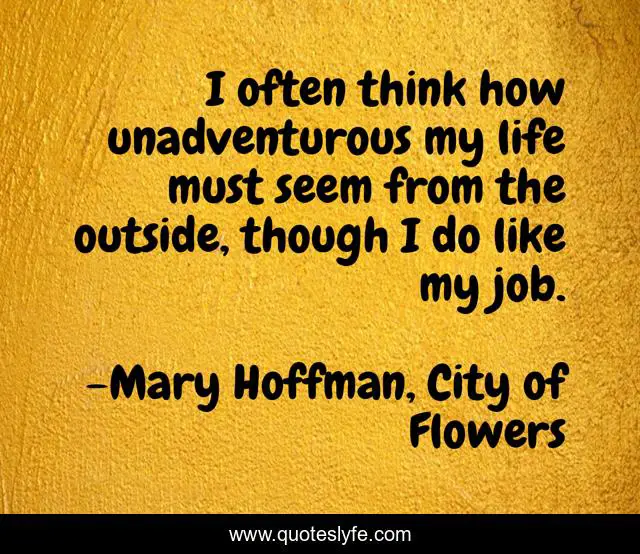 This page presents the quote "I often think how unadventurous my life must seem from the outside, though I do like my job.". Author of this quote is Mary Hoffman, City of Flowers. .
