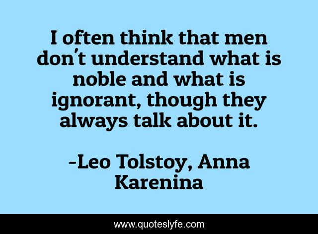 This page presents the quote "I often think that men don't understand what is noble and what is ignorant, though they always talk about it.". Author of this quote is Leo Tolstoy, Anna Karenina. This quote is about noble, men, ignorant,.