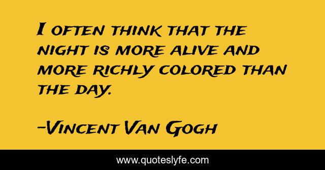 This page presents the quote "I often think that the night is more alive and more richly colored than the day.". Author of this quote is Vincent Van Gogh. This quote is about night, think, day,.