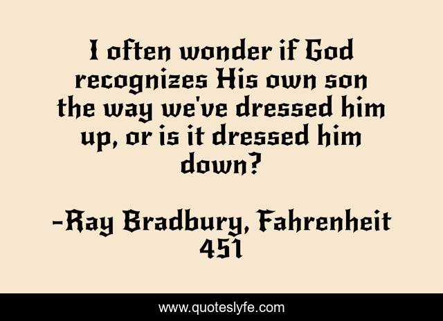 "Ray Bradbury, Fahrenheit 451 Quotes." Quoteslyfe.com, 2025. Fri. 05 Dec. 2025. <https://www.quoteslyfe.com/quote/I-often-wonder-if-God-recognizes-His-11187>.