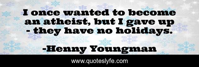 This page presents the quote "I once wanted to become an atheist, but I gave up - they have no holidays.". Author of this quote is Henny Youngman. This quote is about atheist, up, holidays,.