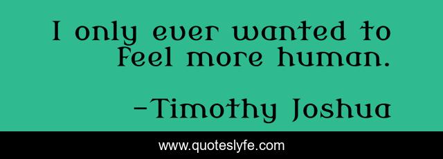 This page presents the quote "I only ever wanted to feel more human.". Author of this quote is Timothy Joshua. This quote is about poem, life, love, poetry, writing, inspirational, enthusiasm, affection,.