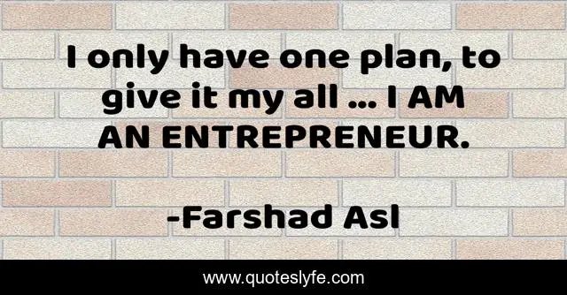 This page presents the quote "I only have one plan, to give it my all ... I AM AN ENTREPRENEUR.". Author of this quote is Farshad Asl. This quote is about success, entrepreneurship,.
