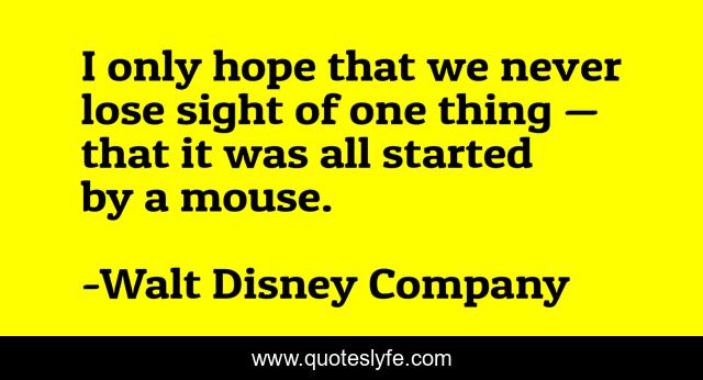 This page presents the quote "I only hope that we never lose sight of one thing — that it was all started by a mouse.". Author of this quote is Walt Disney Company. This quote is about enthusiasm, inspirational,.