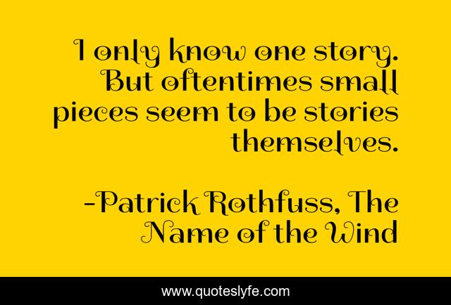 This page presents the quote "I only know one story. But oftentimes small pieces seem to be stories themselves.". Author of this quote is Patrick Rothfuss, The Name of the Wind. .