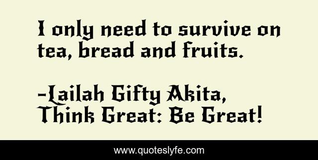 "Lailah Gifty Akita, Think Great: Be Great! Quotes." Quoteslyfe.com, 2025. Fri. 05 Dec. 2025. <https://www.quoteslyfe.com/quote/I-only-need-to-survive-on-tea-176955>.