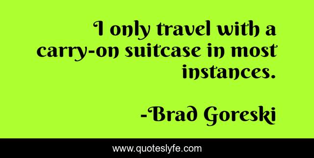 This page presents the quote "I only travel with a carry-on suitcase in most instances.". Author of this quote is Brad Goreski. This quote is about most, only, suitcase,.