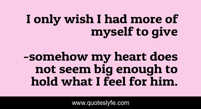 "somehow my heart does not seem big enough to hold what I feel for him. Quotes." Quoteslyfe.com, 2025. Fri. 05 Dec. 2025. <https://www.quoteslyfe.com/quote/I-only-wish-I-had-more-of-81037>.