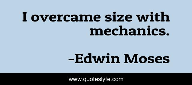 This page presents the quote "I overcame size with mechanics.". Author of this quote is Edwin Moses. This quote is about mechanics, overcame, size,.