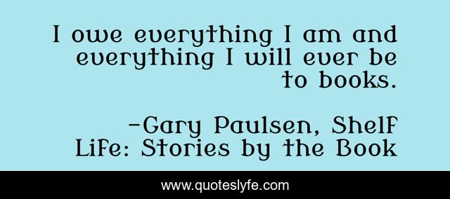 This page presents the quote "I owe everything I am and everything I will ever be to books.". Author of this quote is Gary Paulsen, Shelf Life: Stories by the Book. This quote is about books, reading,.