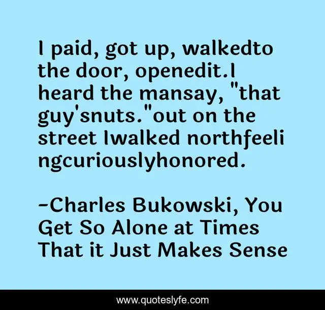 "Charles Bukowski, You Get So Alone at Times That it Just Makes Sense Quotes." Quoteslyfe.com, 2025. Mon. 08 Dec. 2025. <https://www.quoteslyfe.com/quote/I-paid-got-up-walkedto-the-door-21920>.