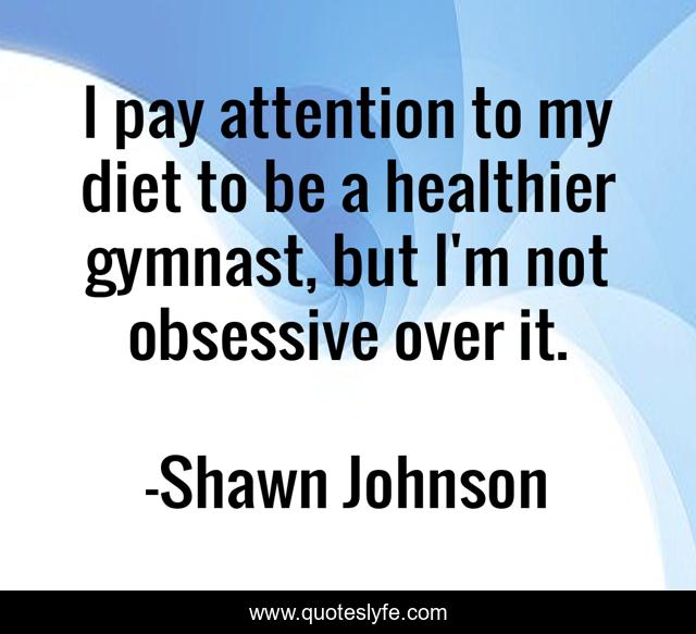 This page presents the quote "I pay attention to my diet to be a healthier gymnast, but I'm not obsessive over it.". Author of this quote is Shawn Johnson. This quote is about pay, attention, over it,.