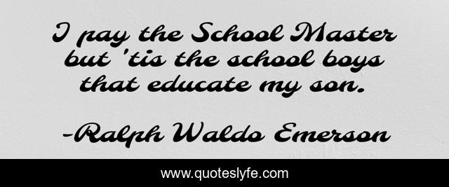 This page presents the quote "I pay the School Master but 'tis the school boys that educate my son.". Author of this quote is Ralph Waldo Emerson. .