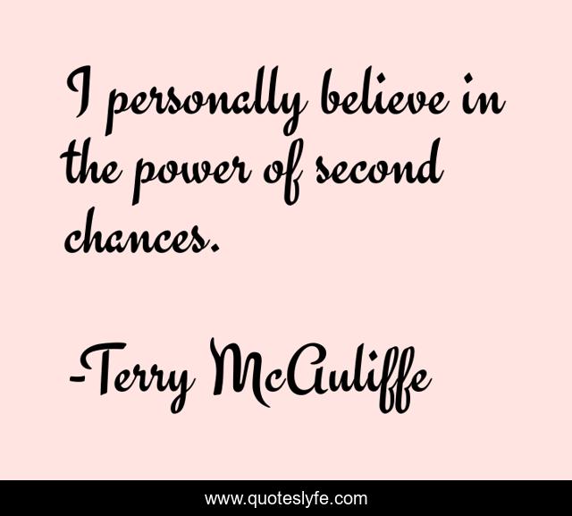This page presents the quote "I personally believe in the power of second chances.". Author of this quote is Terry McAuliffe. This quote is about politics, voting-rights, democrat, virginia,.