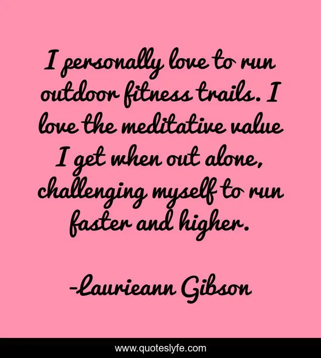 This page presents the quote "I personally love to run outdoor fitness trails. I love the meditative value I get when out alone, challenging myself to run faster and higher.". Author of this quote is Laurieann Gibson. This quote is about alone, myself, love, affection,.