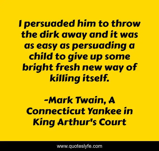 "Mark Twain, A Connecticut Yankee in King Arthur's Court Quotes." Quoteslyfe.com, 2025. Fri. 05 Dec. 2025. <https://www.quoteslyfe.com/quote/I-persuaded-him-to-throw-the-dirk-41140>.