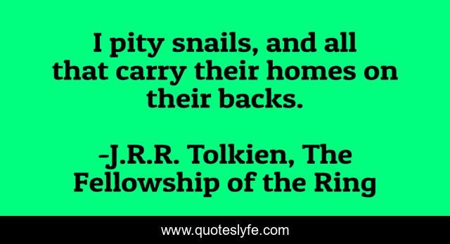This page presents the quote "I pity snails, and all that carry their homes on their backs.". Author of this quote is J.R.R. Tolkien, The Fellowship of the Ring. This quote is about the-fellowship-of-the-ring, frodo, travel,.