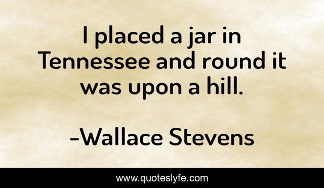This page presents the quote "I placed a jar in Tennessee and round it was upon a hill.". Author of this quote is Wallace Stevens. This quote is about tennessee, poetry,.